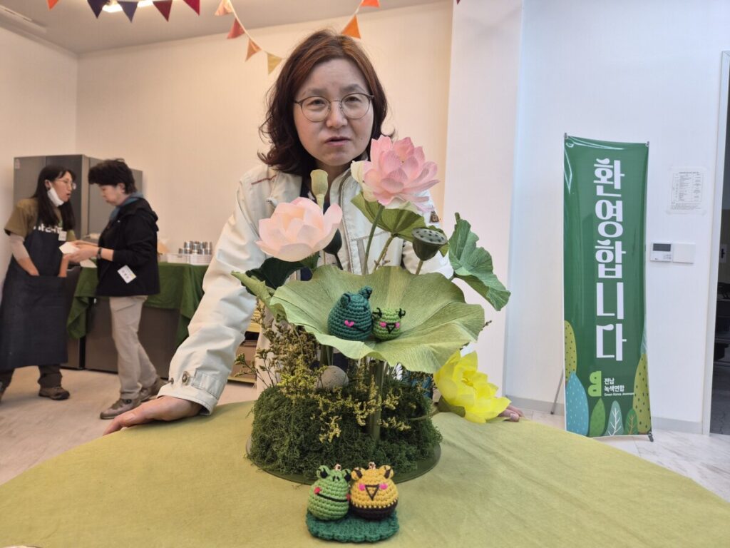 입구에는 문혜연 회원님의 재능기부로 완성된 아름다운 조화 포토존이 마련되어 있었는데요