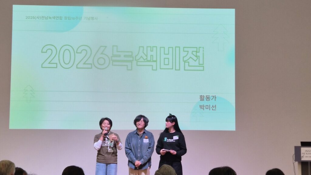 마지막으로 2025년 현장속에서 활동한 전남녹색연합 활동가들 인사와 2026년 비전선언으로 마무리 지었습니다.