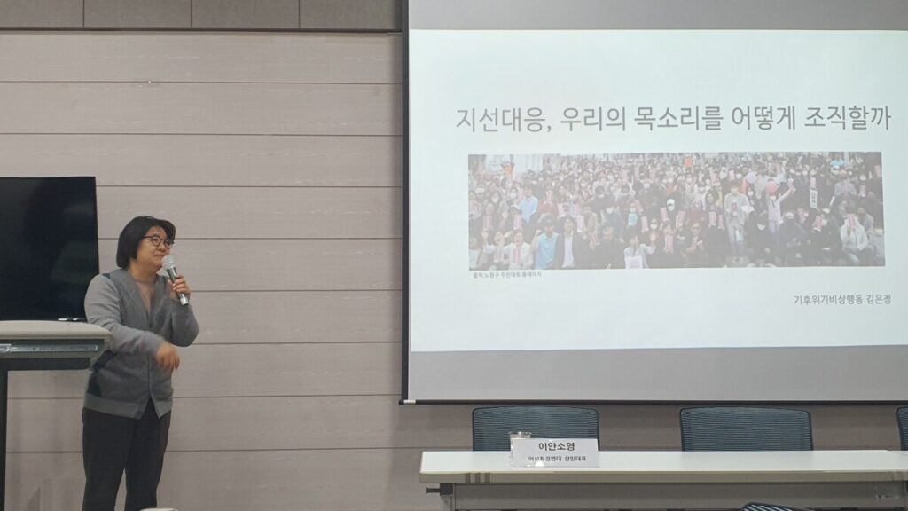 🌿발제2 “지선대응, 우리의 목소리를 어떻게 조직할까” – 기후위기비상행동 김은정 공동집행위원장