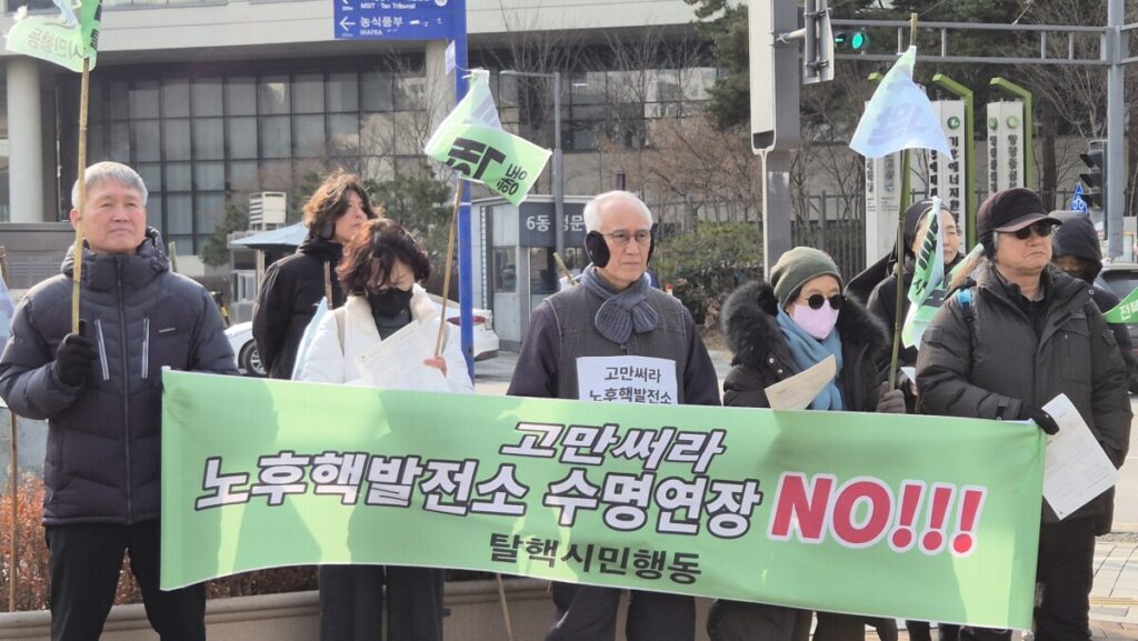 2026.1.19 신규 핵발전소 정책을 추진 중인 기후에너지환경부가 위치한 세종정부청사 앞에서 기자회견을 진행했다.