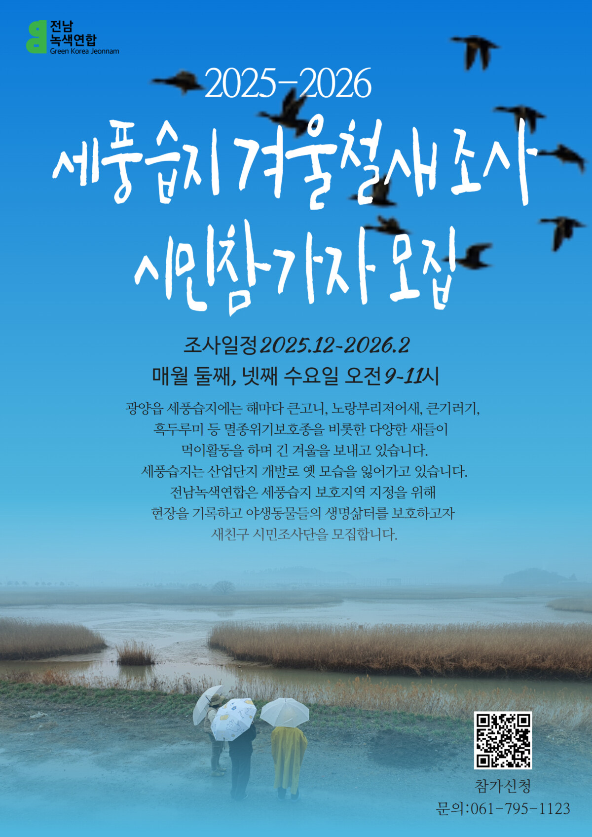 아래 링크를 통해 전남녹색연합이 세풍습지에서 진행한 관찰·조사 기록을 확인해 보세요.